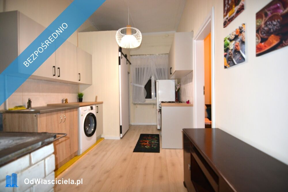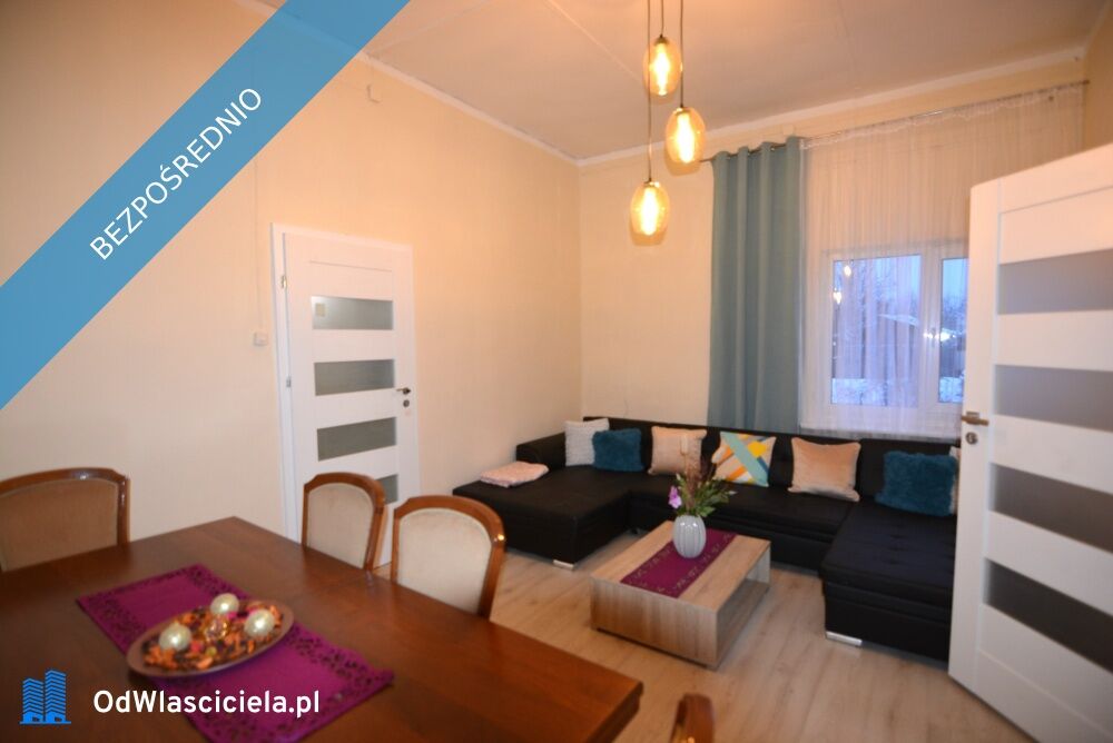Parter w parterowym drewnianym budynku z 12 mieszkaniami. Mieszkanie jest w stanie umożliwiający zamieszkanie dla mniej wymagających Klientów. Wszystkie meble i całe wyposażenie widoczne na zdjęciach zostają w mieszkaniu.